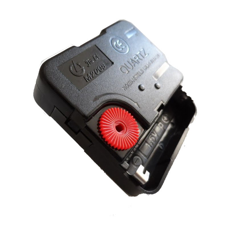 Mecanismo de cuarzo para reloj mural con eje corto de 5 mm y puntero liso. Ideal para relojes con base delgada. No incluye pila.
