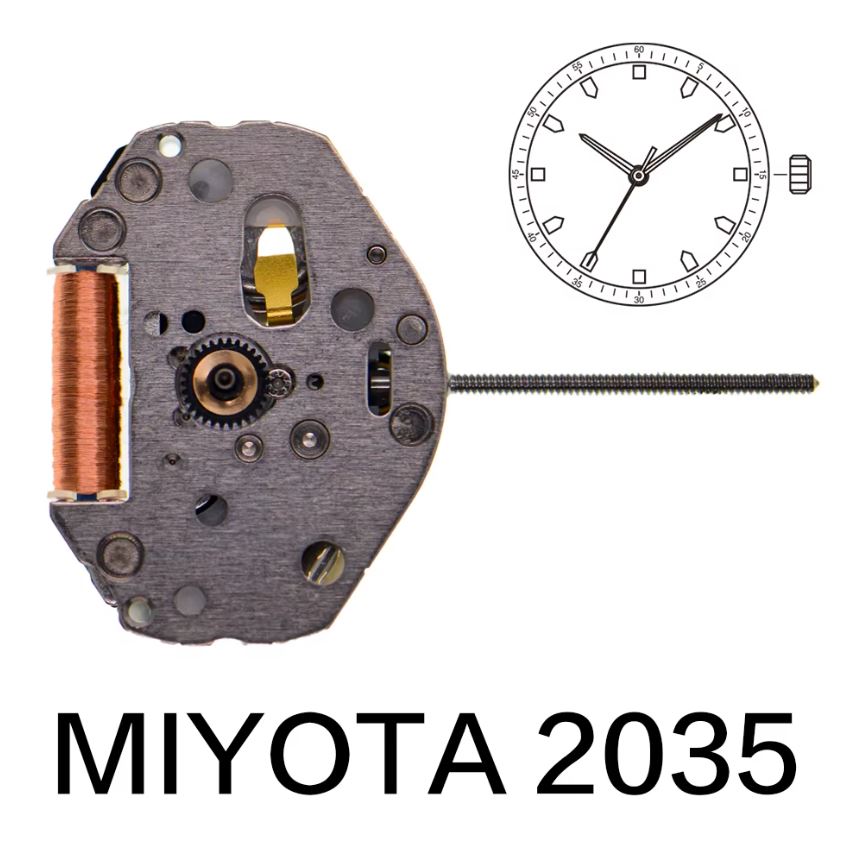 El Movimiento Miyota 2035 es un mecanismo de cuarzo japonés fiable y ampliamente usado por relojeros y fabricantes.
