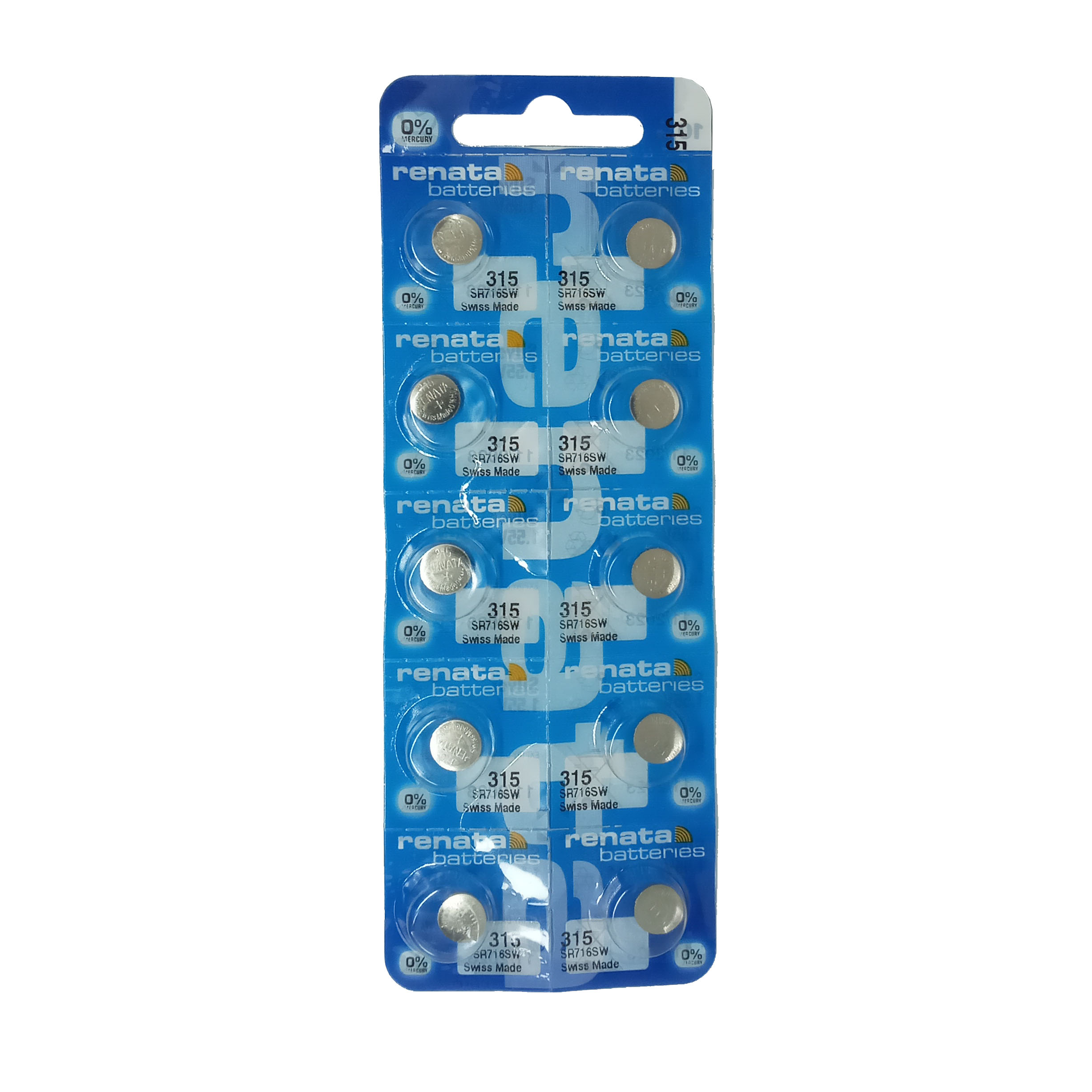 Pack de 10 pilas Renata 315 / SR716SW, fabricadas en Suiza, ideales para relojes, calculadoras y otros aparatos electrónicos pequeños. Energía confiable y larga duración.