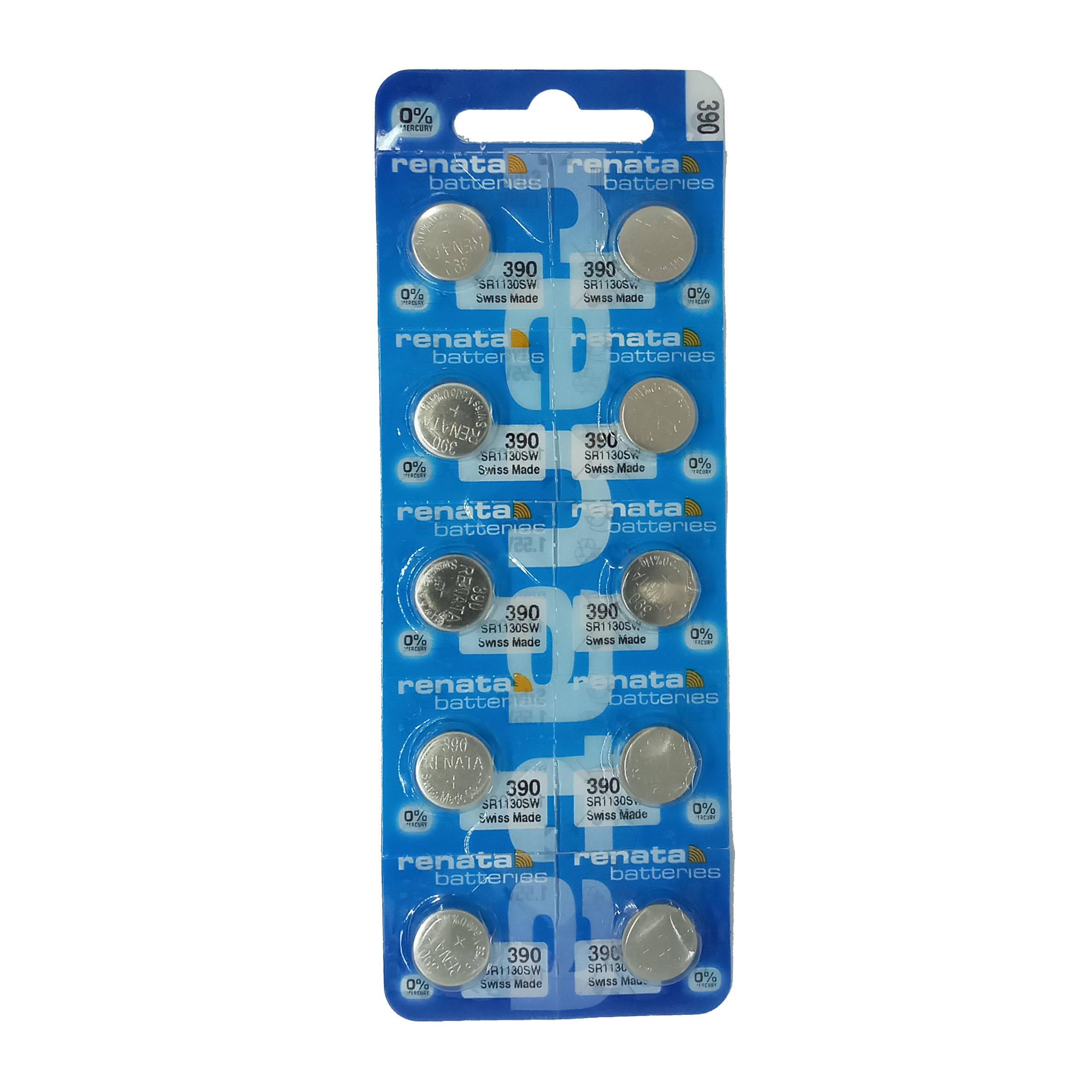 Pack de 10 pilas Renata 390 / SR1130SW, fabricadas en Suiza, ideales para relojes, calculadoras y otros aparatos electrónicos pequeños. Energía confiable y larga duración.