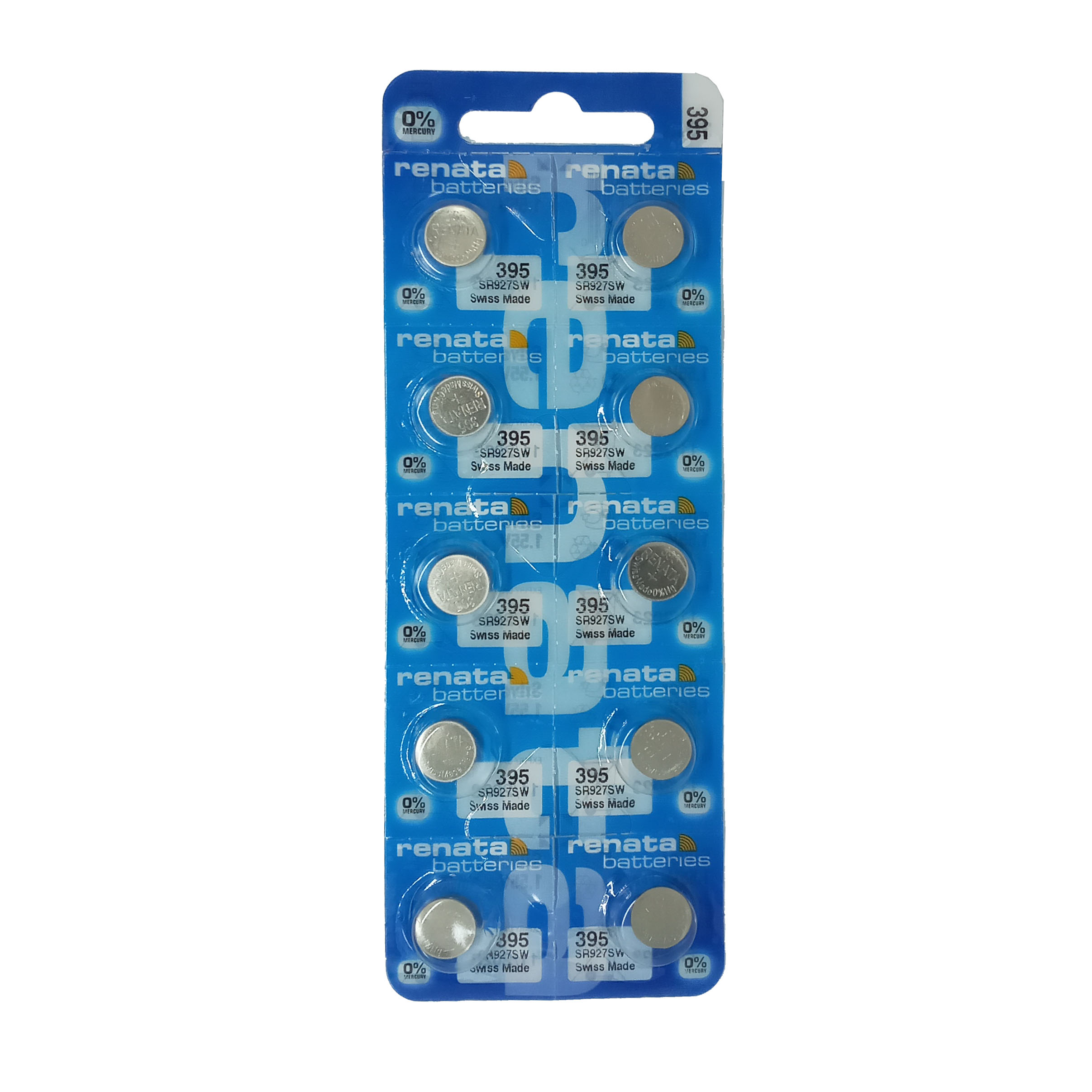 Pack de 10 pilas Renata 395 / SR927SW, fabricadas en Suiza, ideales para relojes, calculadoras y otros aparatos electrónicos pequeños. Energía confiable y larga duración.