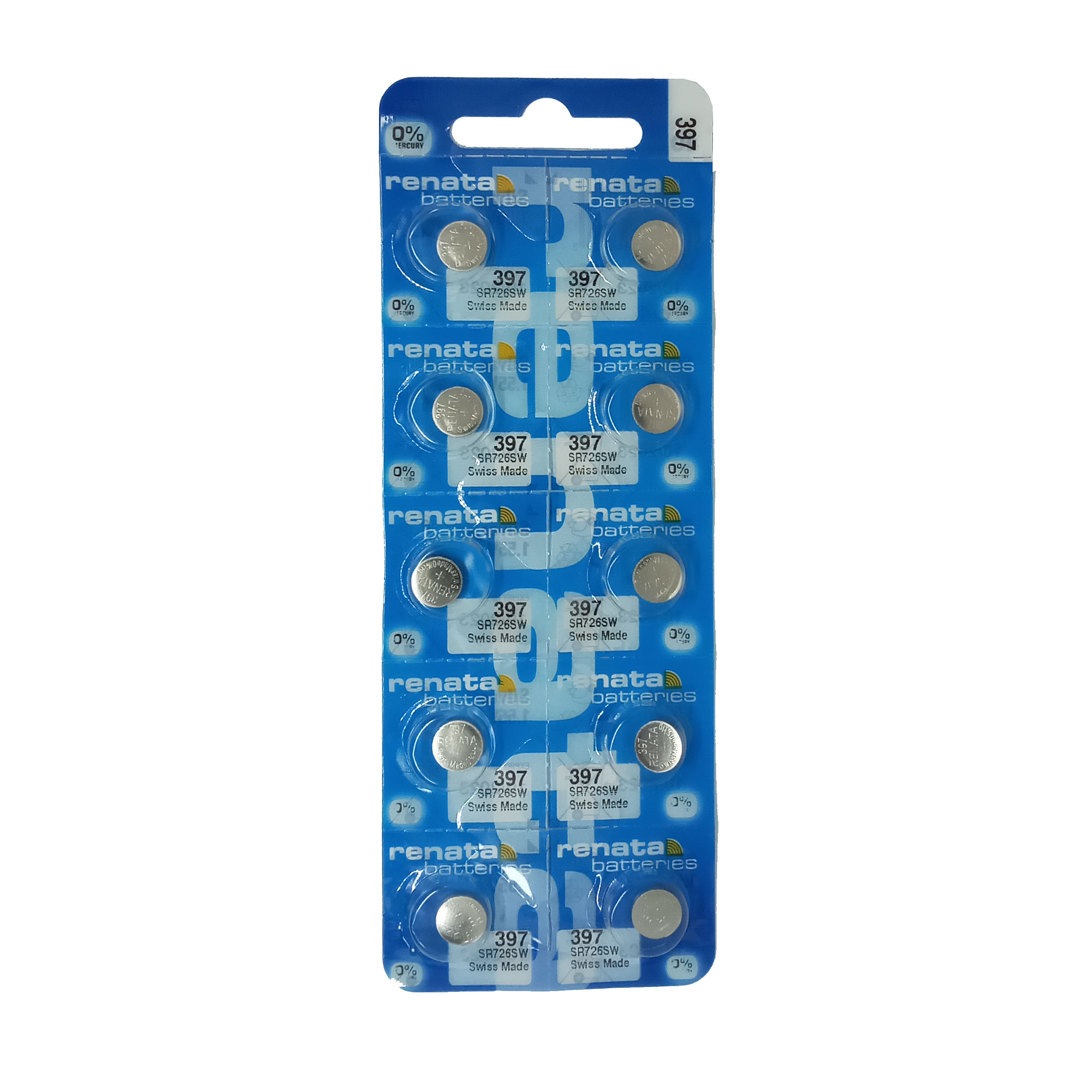 Pack de 10 pilas Renata 397 / SR726SW, fabricadas en Suiza, ideales para relojes, calculadoras y otros aparatos electrónicos pequeños. Energía confiable y larga duración.